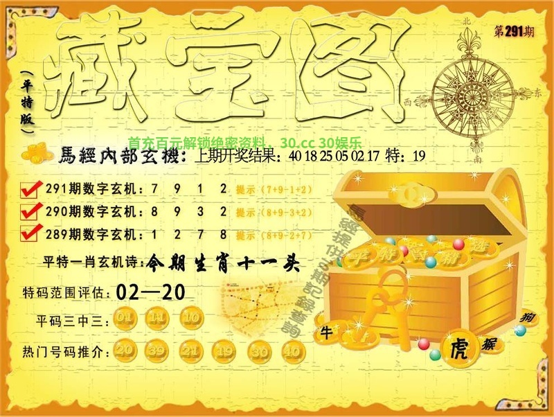 291期:平特藏宝图玄机:【今期生肖十一头】 解:今期生肖十一头,解虎,平特虎 推荐平码:20.39.21.19.30.40 开奖结果:43.24.06.10.30.25T44 |